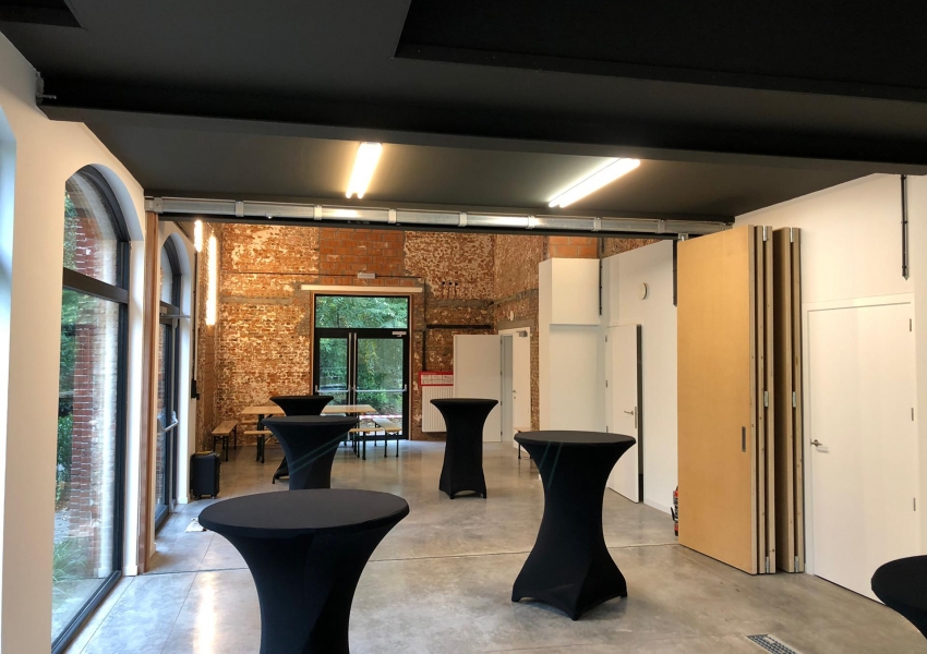 - 1 grote dagzaal in te delen in 3 aparte zalen door schuifwanden om er slaapzaal en refter van te maken