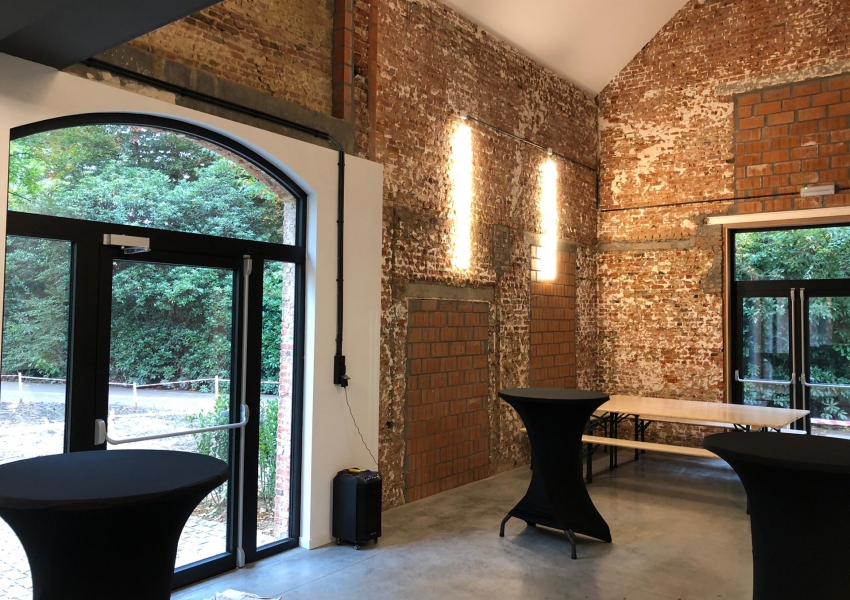 Het lokaal bevindt zich midden in een park in het hartje van Boechout.